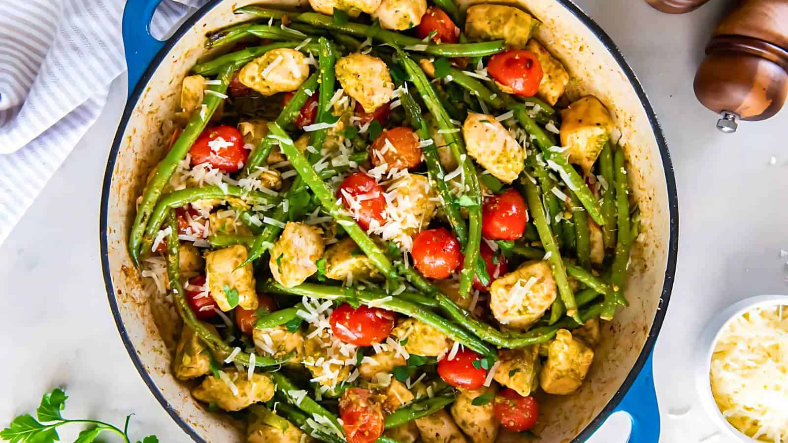 Pesto adds a fresh and savory touch to this simple chicken and veggie dish. It’s a go-to for quick, healthy, and mouthwatering meals.